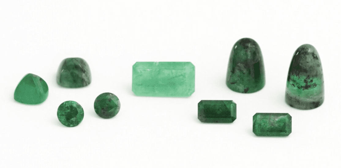 Most emeralds have many inclusions (internal clarity characteristics) that are a part of their natural formation in the earth. Natural emeralds are known for this to the point that a great way to tell synthetic (man-made) emeralds from natural ones is if the gem looks “too perfect” or you can’t see a single inclusion.