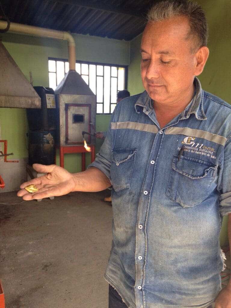 In the early 2000s, several coffee farmers in the area began splitting their time between artisanal gold mining and farming. Thanks to early organizing efforts, they were able to organize and create the Íquira Cooperative in 2004 and obtain a registered mining title and official licenses from the Colombian government. The Íquira cooperative, characterized by a strong sense of unity and a loving spirit, has become aware of the positive impact that mining can have on its community thanks to the training workshops hosted by the Alliance for Responsible Mining (the org that oversees Fairmined).