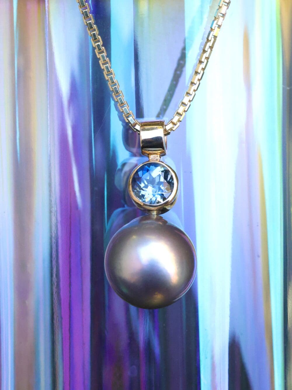 | Gemstone Details | Sea of Cortez Pearl & African Bi-color Blue Sapphire from Columbia Gem House |