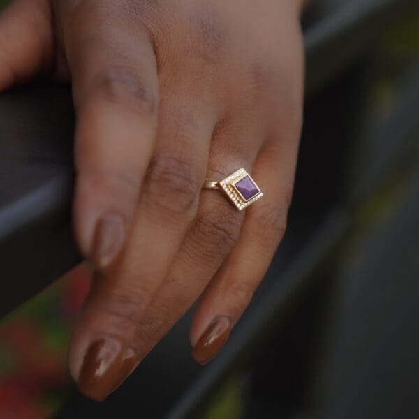 The Cutaway ring is the epitome of a minimalist stacking band that can still shine on its own. It features hand-carved pyramid details for lots of metallic sparkle.