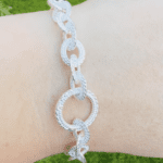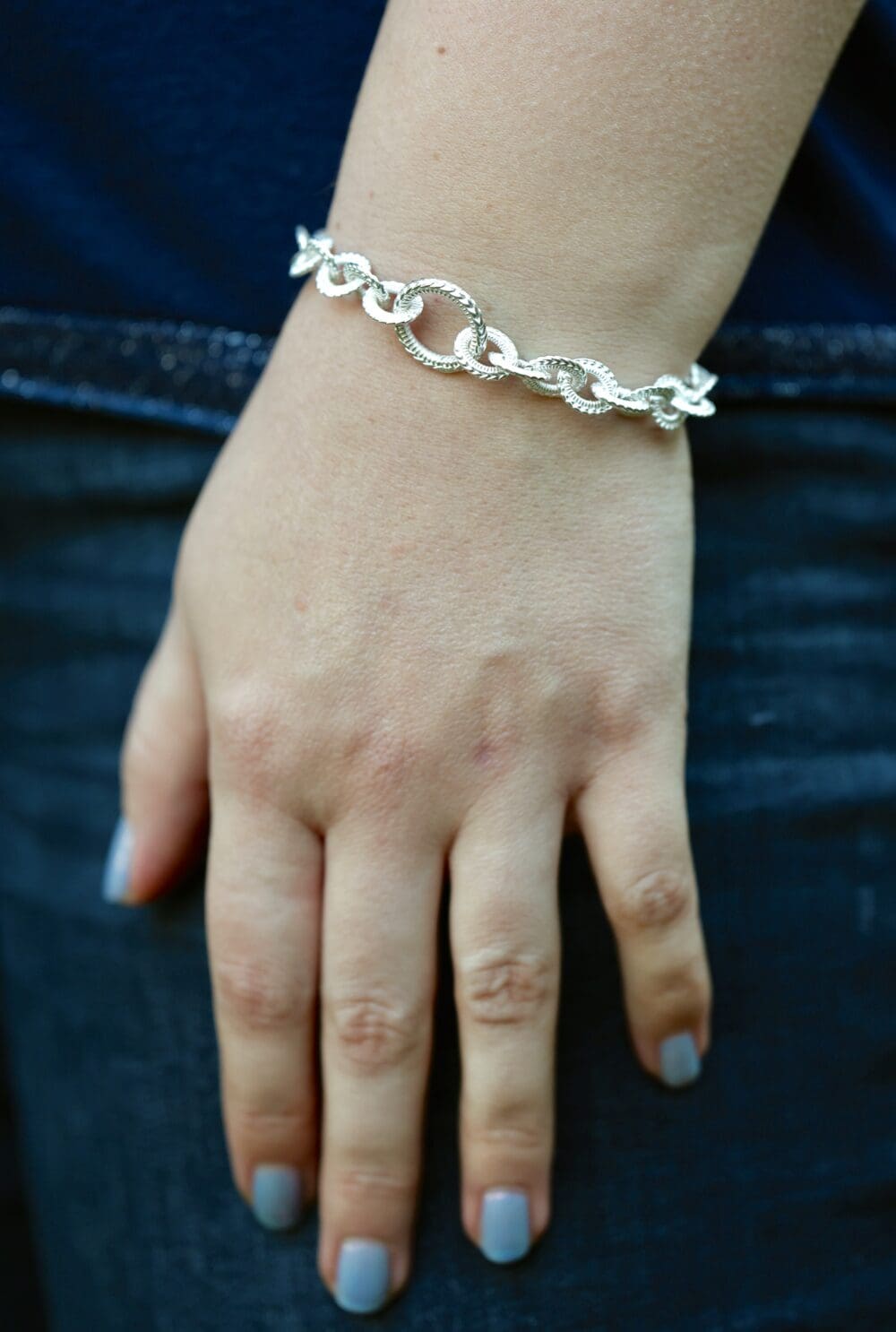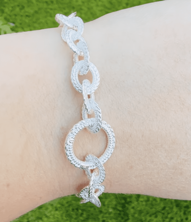 The Gina Bracelet is a funky piece with a push-gate clasp that blends seamlessly into the design. Each loop was first crocheted by Twyla using a tiny crochet hook, and then cast into metal to perfectly preserve its texture. This bracelet is perfect for you if you want a chunky statement look that is also surprisingly lightweight.