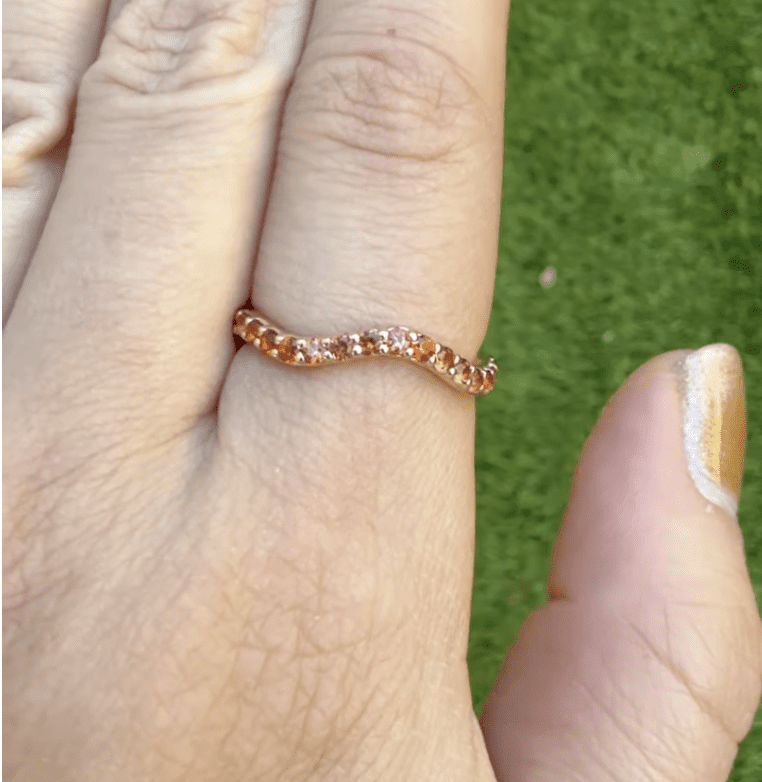 The sky lights up, the water turns to glass, and suddenly you're drenched in color—pink, gold, and violet fire. It takes your breath away. The Golden Hour Lull Bands are made for that feeling - that sunset that brings the color within you to life. Set in 14kt yellow Fairmined gold, this wavy eternity band glows vibrant with orange sapphires — gemstones that burn like the sky right before the sun drops below the horizon. Low-profile and comfort-fit, it stacks easy, wears bold, and reminds you of the magic at the end of a perfect, golden afternoon on the water.
