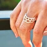 The new version of the Melanie Ring is here—and she’s better than ever. With crisper detail and even more defined texture, this updated cast captures every thread of lace like never before. Designed to look like a tiny crown, the Melanie is delicate, sculptural, and so easy to wear.