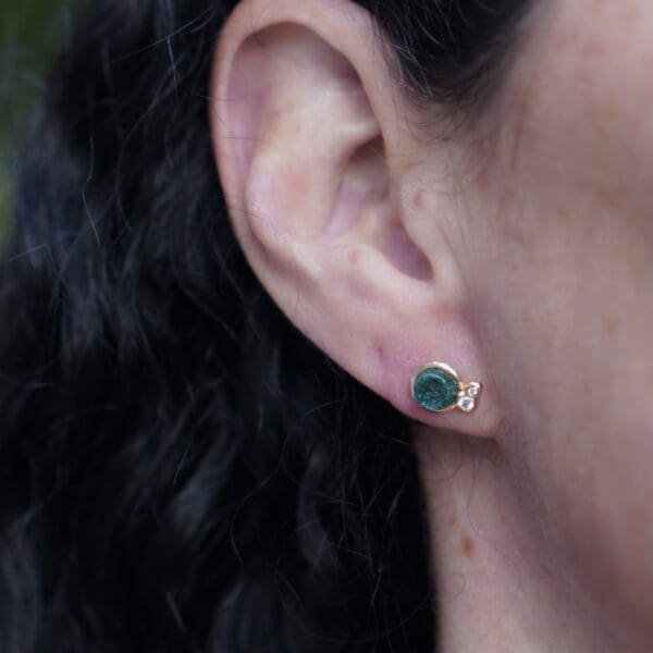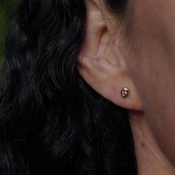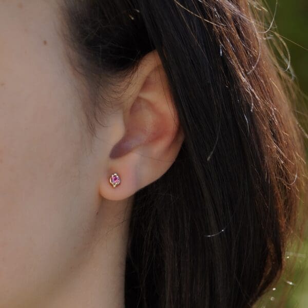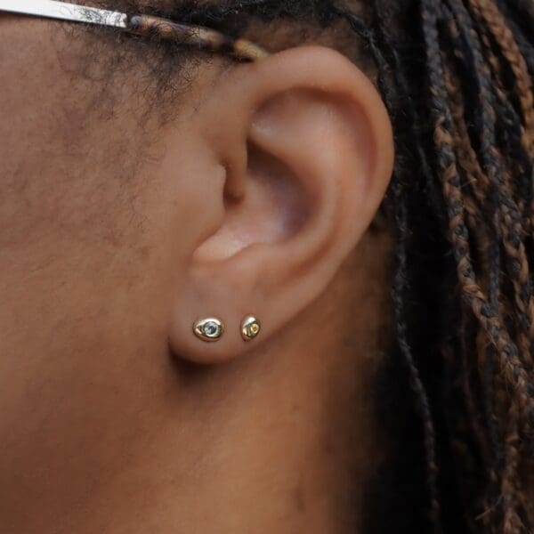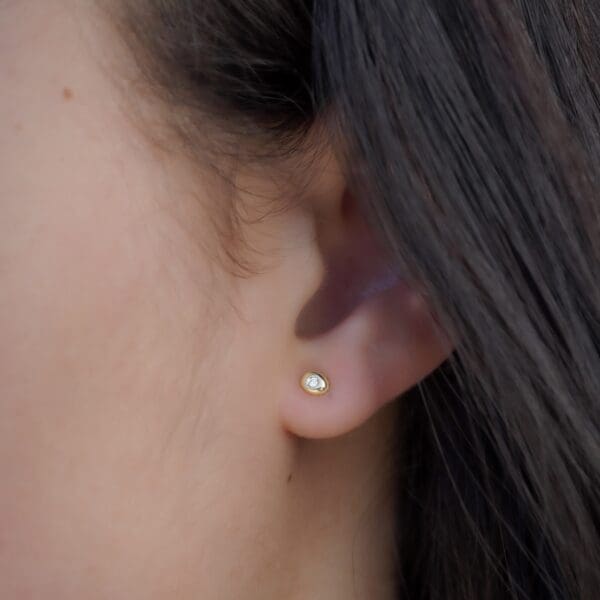 These mini channel set earrings are destined to be the sweetest edition to your earring collection. Featuring three princess cut black diamonds in 14kt yellow gold. Wear them by themselves for a minimalist look, or in a second ear piercing to add flair to your ear stack!