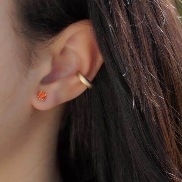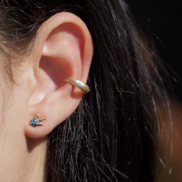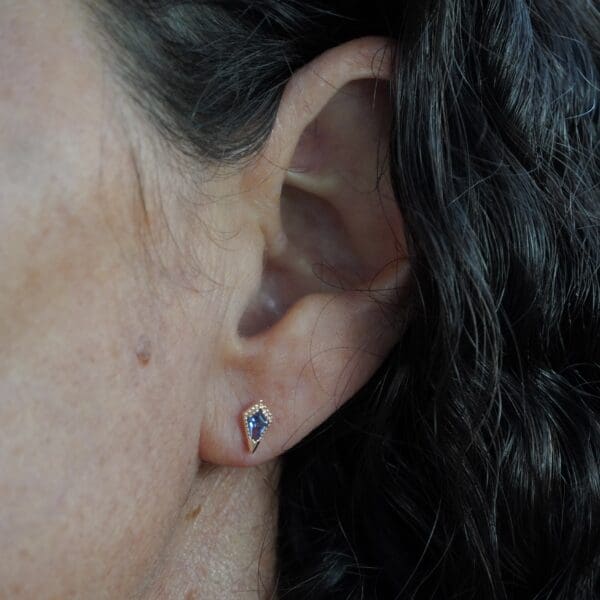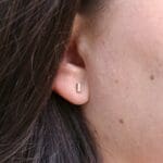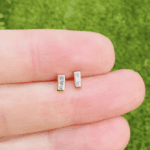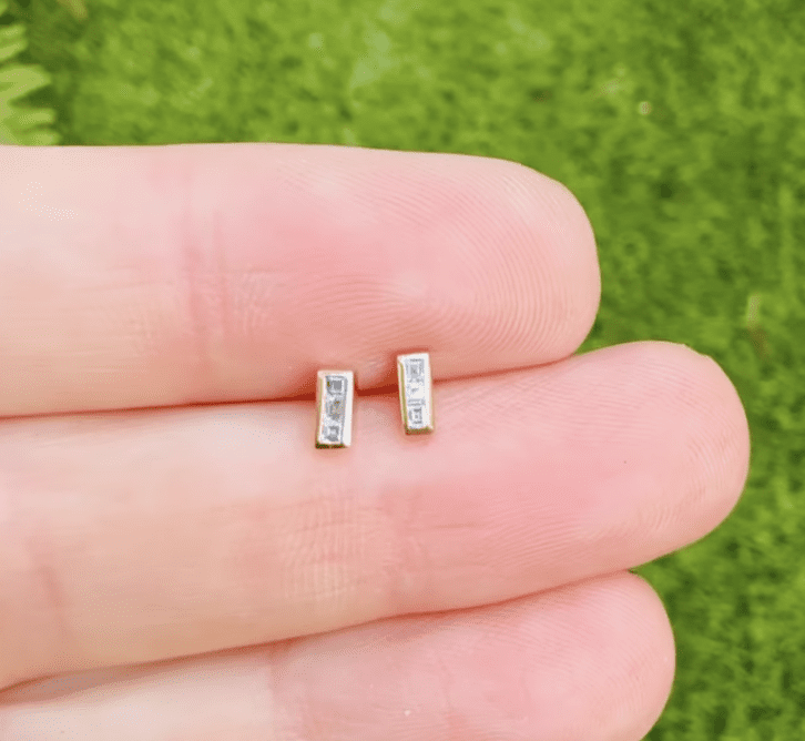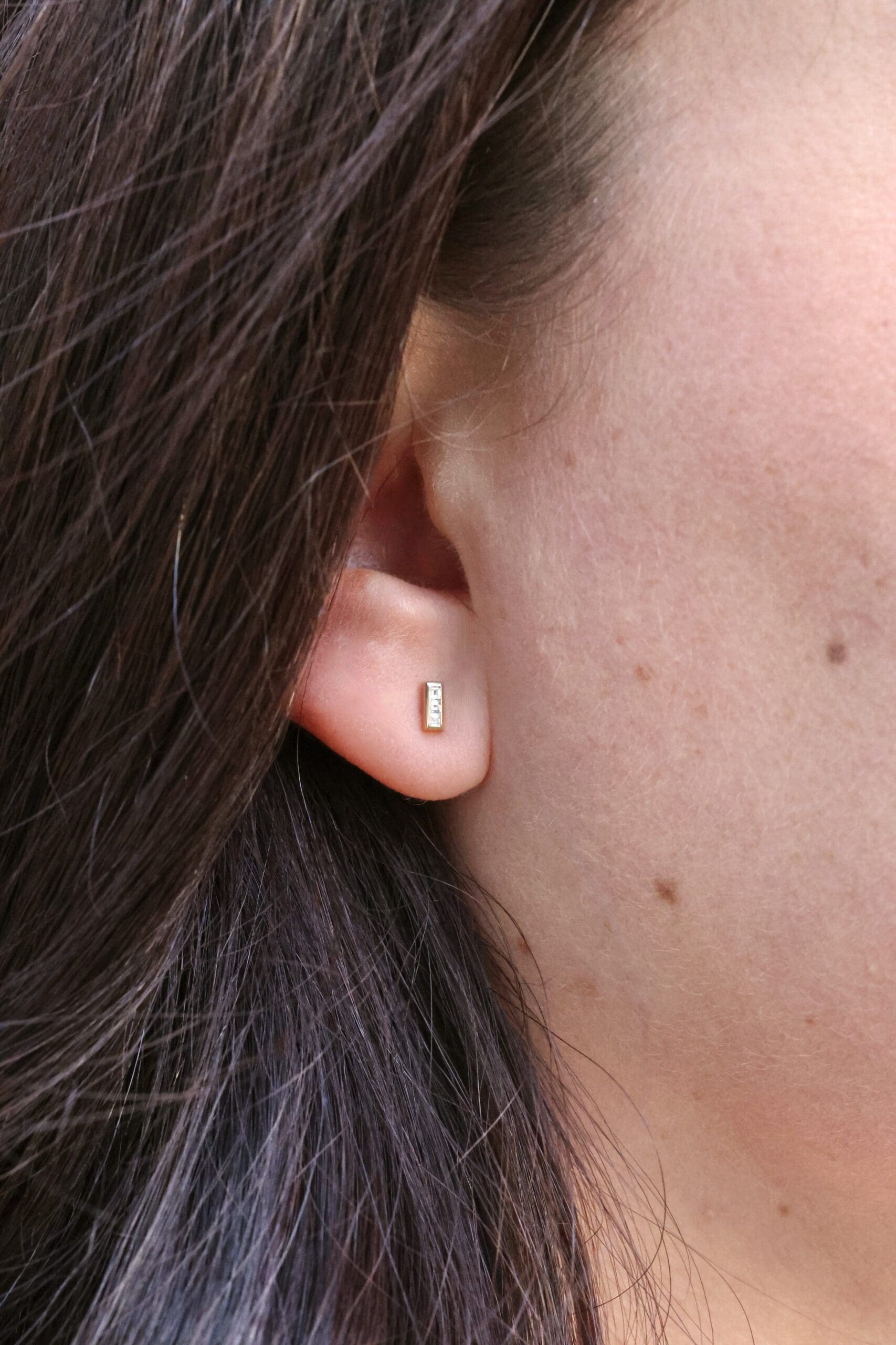 These mini channel set earrings are destined to be the sweetest edition to your earring collection. Featuring three sparkly carré cut white diamonds in 14kt yellow gold. Wear them by themselves for a minimalist look, or in a second ear piercing to add sparkle to your ear stack!