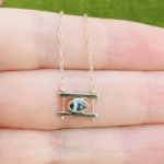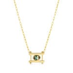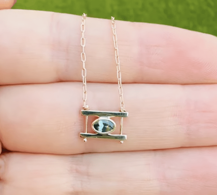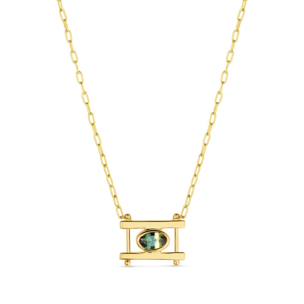 The Kiyo speaks to the physical and symbolic meanings of Japanese Torii gates, which represent a transition from the mundane to the sacred. "Kiyo" is also a traditional Japanese name that can have several meanings, including sacred, rare and hope. Each super dainty Kiyo necklace is just made for layering with longer pieces, or wearing on its own for a little symbolic sparkle. This necklace features a gorgeous bi-color Australian sapphire at the center.