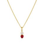 The Sacred Heart necklace features an adorable little raspberry hued garnet heart topped with baguette diamonds for extra sparkle. Fun and whimsical, yet still minimalist, these dainty necklace would make a lovely addition to your necklace collection. Includes an 18-inch 14kt yellow gold chain.