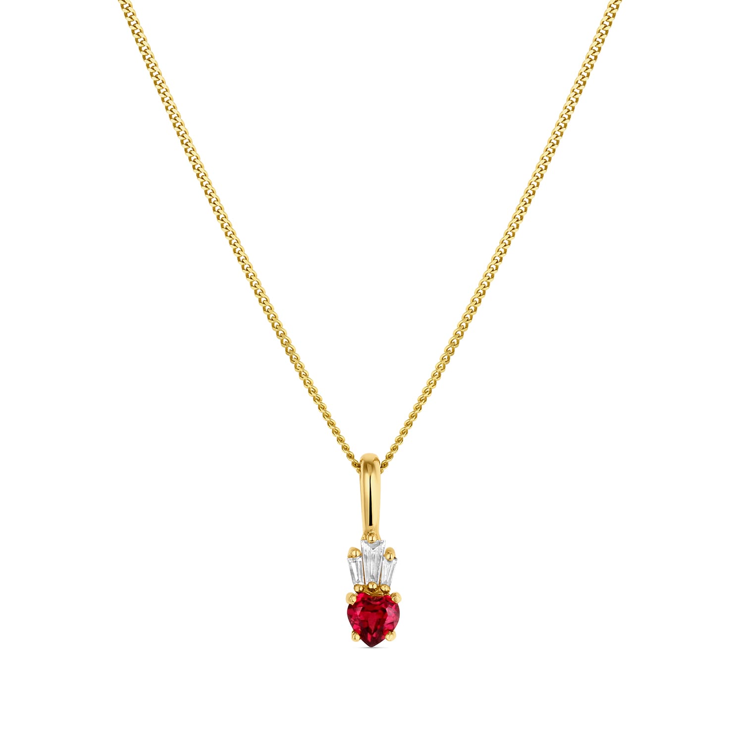 | Gemstone Details | G-I/SI white baguette diamonds and garnet hearts |