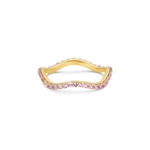 There’s a hush before the world wakes up—the sky stretches open in soft blues, lavenders, and pale aquas. The air is still. The deep teal water shifts like glass. And for a little while, this present moment is all that matters. The Dawn Patrol Lull Bands were made for that calm. Set in 14kt yellow Fairmined gold, this wavy eternity band glistens with lavender sapphires—stones that echo the cool pull of a dawn swell, steady and serene. Low-profile and comfort-fit, it stacks smooth, wears easy, and calls you back to the quiet clarity of an early tide.
